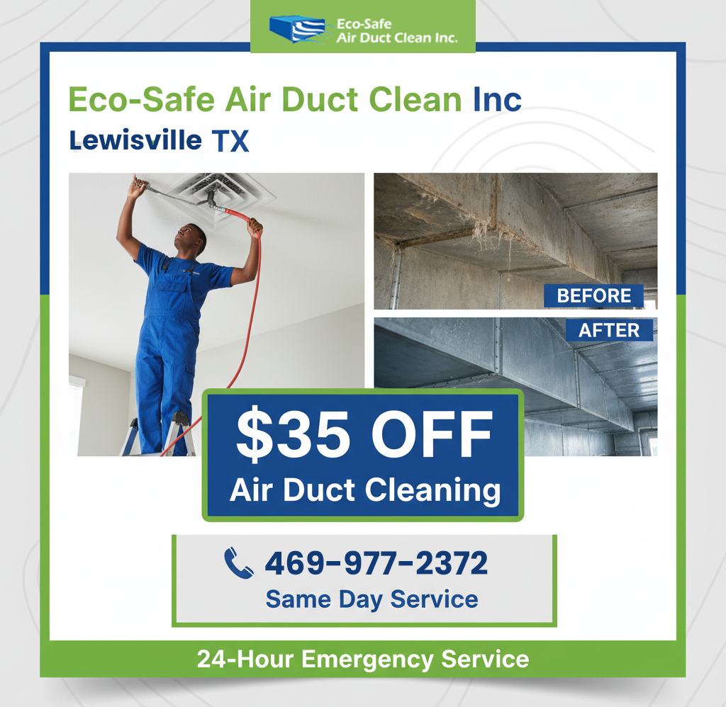 Take advantage of limited-time savings designed to help Lewisville homeowners enjoy cleaner air without stretching their budget. Eco Safe Air Duct Cleaning Lewisville TX offers straightforward deals with honest pricing, no surprises, and the same reliable service our customers trust every day.